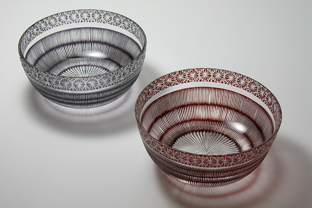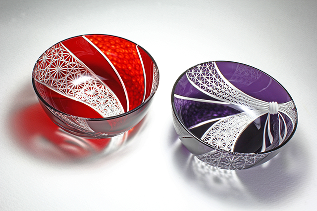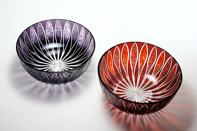 日本で使われている切子の文様などを使い、 懐かしいデザインや和のテイストを感じる切子を 制作しています。